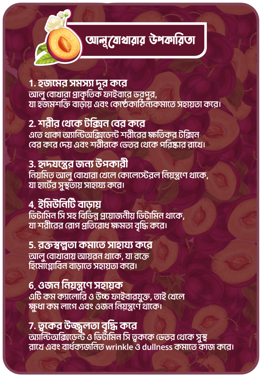 বাছাইকৃত আফগানিস্তানের প্যাকেটজাত আলুবোখারা দিয়ে তৈরি (বাজারের খোলা আলুবোখারা নয়)।